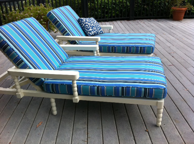 Who says you can’t do spool for the pool? Custom lounge chairs by Murphy Deesign & 45 Three Modern Vintage Home. They have the same stunning backs as the chairs above!