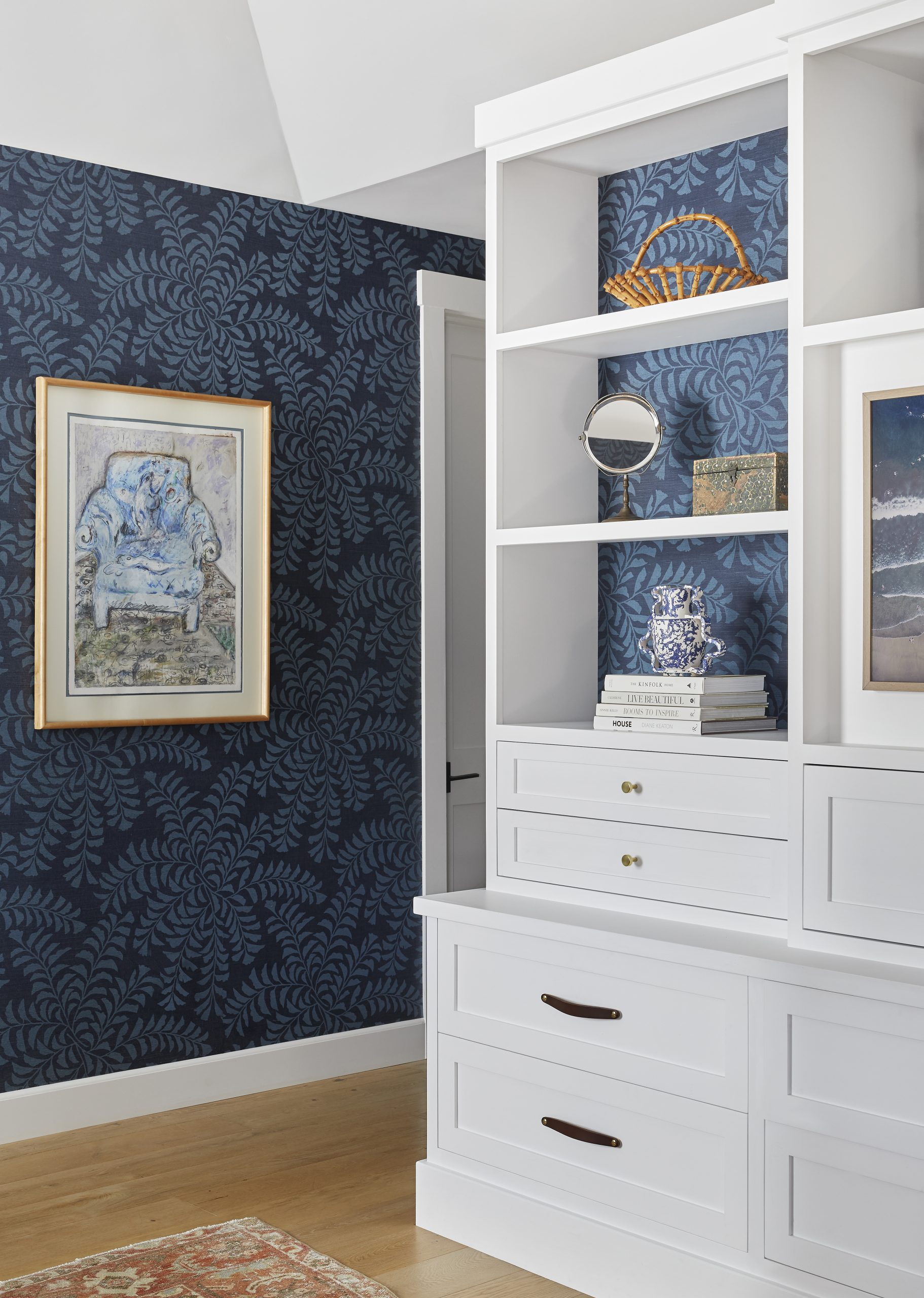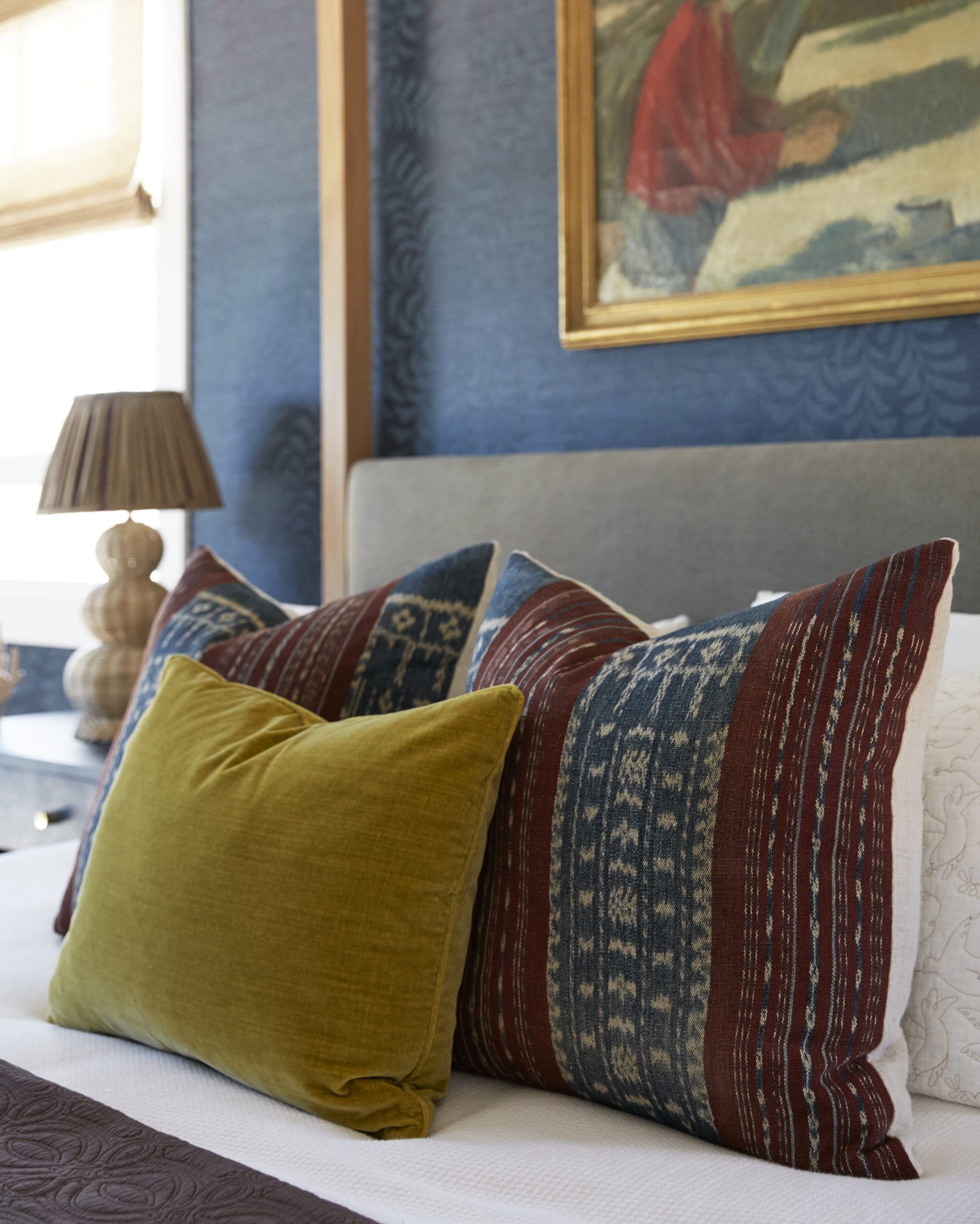 Tone on tone blues reflect the ocean just a few blocks away, and modern and vintage pieces live harmoniously in a space that feels modern, unique and warm with history.